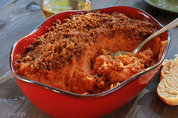 I never liked sweet potato casseroles with marshmallows; this one is way more up my alley: orange-streusel sweet potato casserole from Liv Life Too. [Not migraine-friendly. Use gluten-free all-purpose flour blend for gluten-free version.] Vegan, contains nuts.