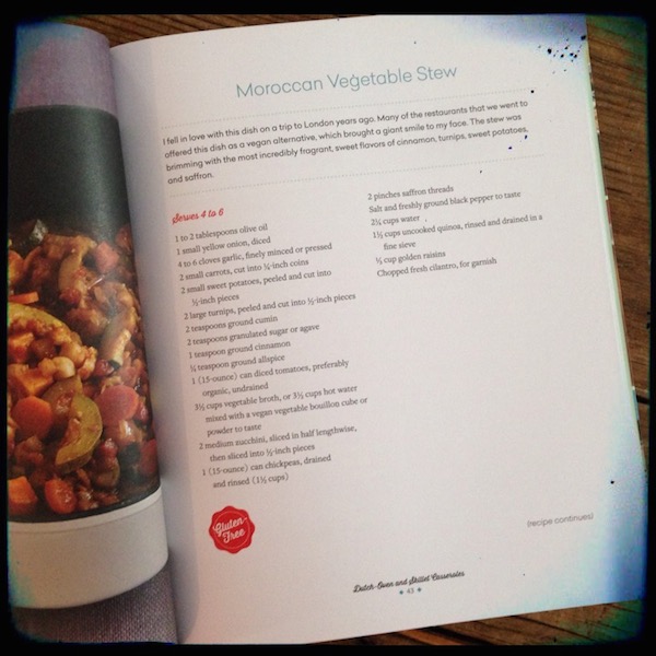 Hasson begins with an introduction and then a chapter describing the vegan casserole pantry: ingredients as well as tools you’ll need. Recipes are divided into seven chapters: One-dish appetizers, Dutch-oven & skillet casseroles, Old favorites & new twists, Pasta casseroles, Vegetable casseroles, Dessert casseroles, and Sauces, toppings & basics. The book has lovely clean layout, with excellent choices in typeface and color to highlight the text while making it user-friendly.