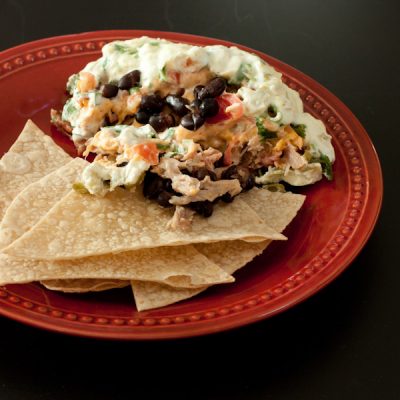 Baked 7-layer dip with pulled pork